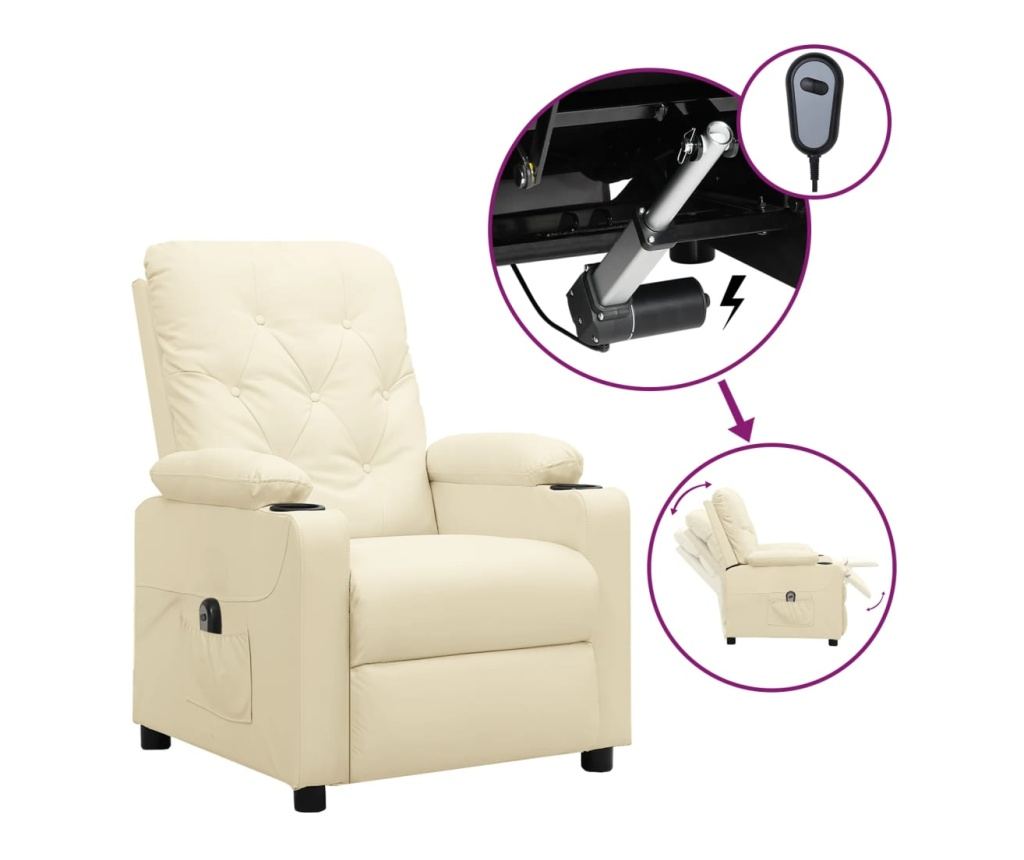 Отпуснете се в този изключително удобен електрически реклайнер фотьойл, тапициран с първокласна изкуствена кожа и подплатен с плътен дунапрен!