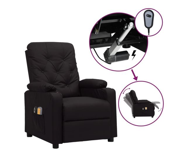 Електрически реклиниращ масажен стол, черен, изкуствена кожа