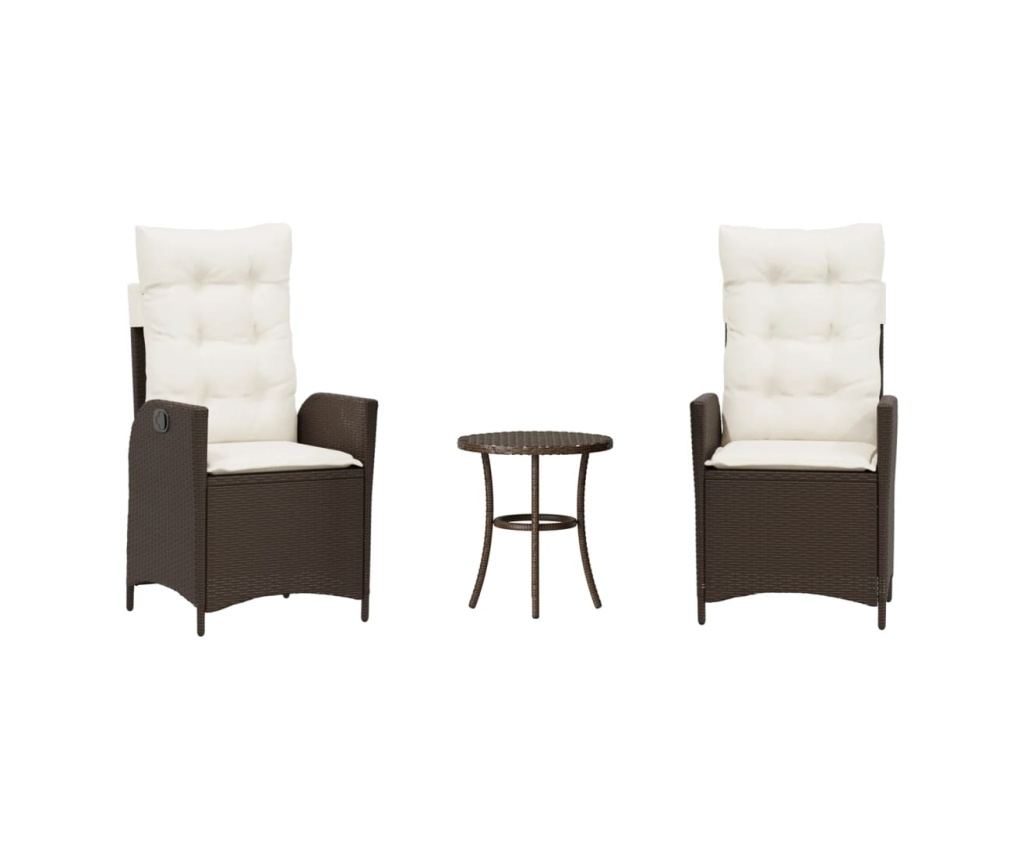 Насладете се на кафе или поговорете със семейството и приятелите си в градината, задния двор или на балкона с този удобен комплект за бистро! Издръжлив материал: PE ратан, известен също като полиратан, е здрав синтетичен материал с малко необходима поддръжка, който прилича на естествен ратан. Той е лек, лесен за почистване и често се използва за външни мебели поради своята издръжливост и устойчивост на атмосферни влияния.Регулируема облегалка: Този градински стол има дръжка. Можете да регулирате облегалката във всяка позиция чрез издърпване на дръжката и бързо да я върнете в първоначалната ѝ позиция.Удобна седалка: Този комплект мебели за открито, снабдени с плътно подплатени възглавници, предлага удобство при сядане.Калъф, който може да се сваля и може да се пере: Тези възглавници за седалки имат подвижни калъфи за лесно пране и поддръжка.Здрава и стабилна рамка: Стоманената рамка с прахово покритие гарантира, че градинската мебел е здрава и стабилна за ежедневна употреба на открито. Добре е да се знае:За да сте сигурни, че вашите външни мебели ще останат красиви, ви препоръчваме да ги защитите с водоустойчиво покривало.