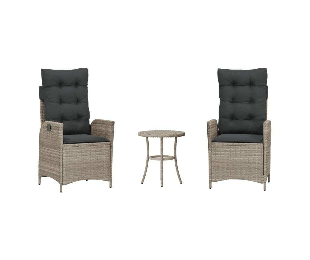 Насладете се на кафе или поговорете със семейството и приятелите си в градината, задния двор или на балкона с този удобен комплект за бистро! Издръжлив материал: PE ратан, известен също като полиратан, е здрав синтетичен материал с малко необходима поддръжка, който прилича на естествен ратан. Той е лек, лесен за почистване и често се използва за външни мебели поради своята издръжливост и устойчивост на атмосферни влияния.Регулируема облегалка: Този градински стол има дръжка. Можете да регулирате облегалката във всяка позиция чрез издърпване на дръжката и бързо да я върнете в първоначалната ѝ позиция.Удобна седалка: Този комплект мебели за открито, снабдени с плътно подплатени възглавници, предлага удобство при сядане.Калъф, който може да се сваля и може да се пере: Тези възглавници за седалки имат подвижни калъфи за лесно пране и поддръжка.Здрава и стабилна рамка: Стоманената рамка с прахово покритие гарантира, че градинската мебел е здрава и стабилна за ежедневна употреба на открито. Добре е да се знае:За да сте сигурни, че вашите външни мебели ще останат красиви, ви препоръчваме да ги защитите с водоустойчиво покривало.