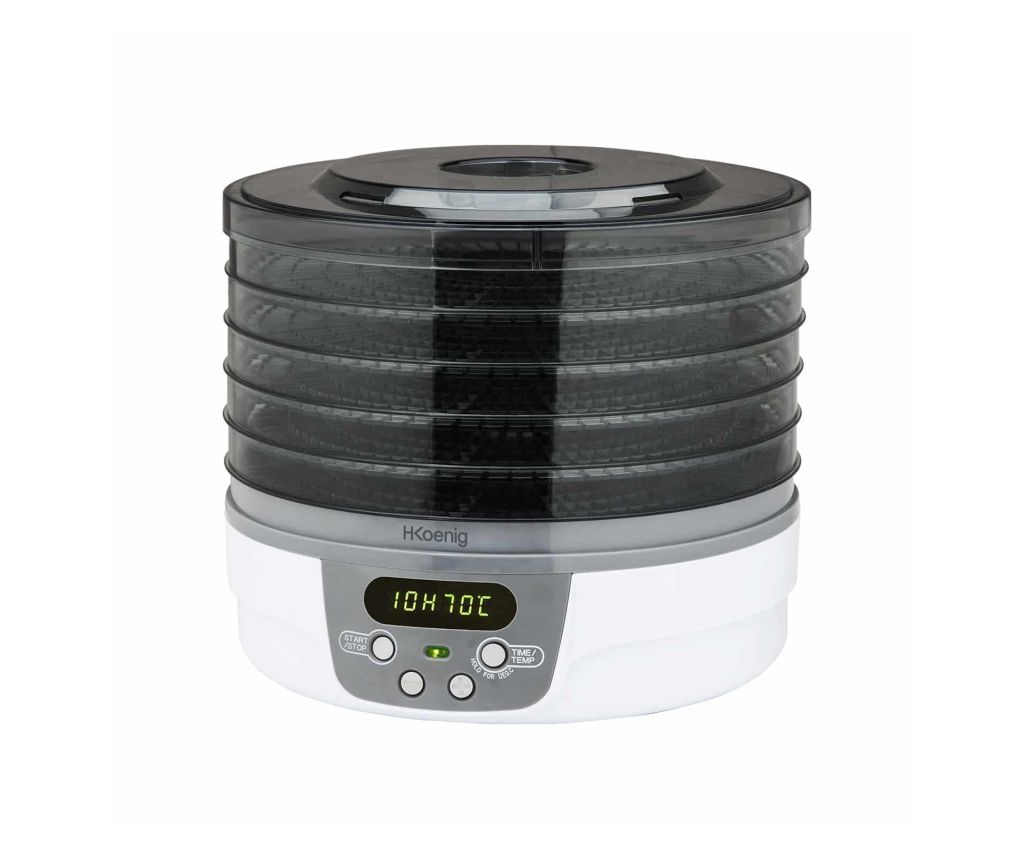 Сушилня H.Koenig DSY700, За плодове, месо и риба, 250 W, 5 тави, 40-70 градуса, Таймер, Бяла