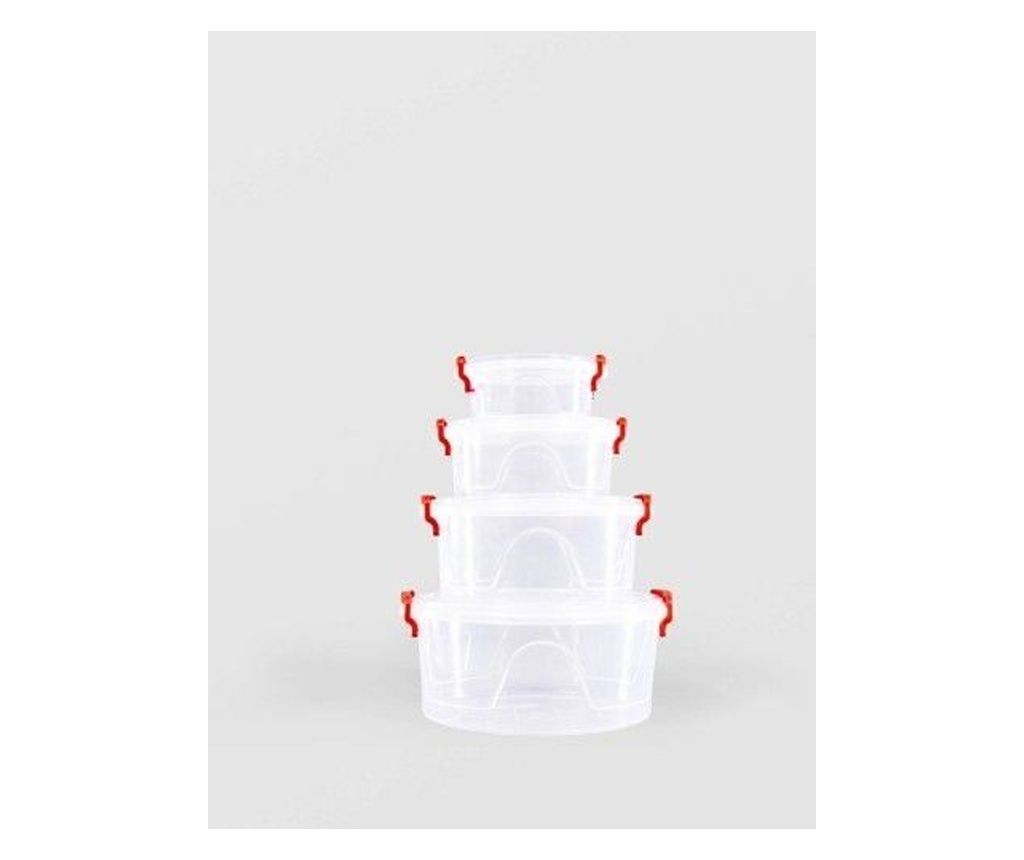 Комплект от 4 кръгли кутии Mercaton® със странични дръжки и плътен капак, прозрачни, 300 ml, 600 ml, 1.5 L, 2.4 L