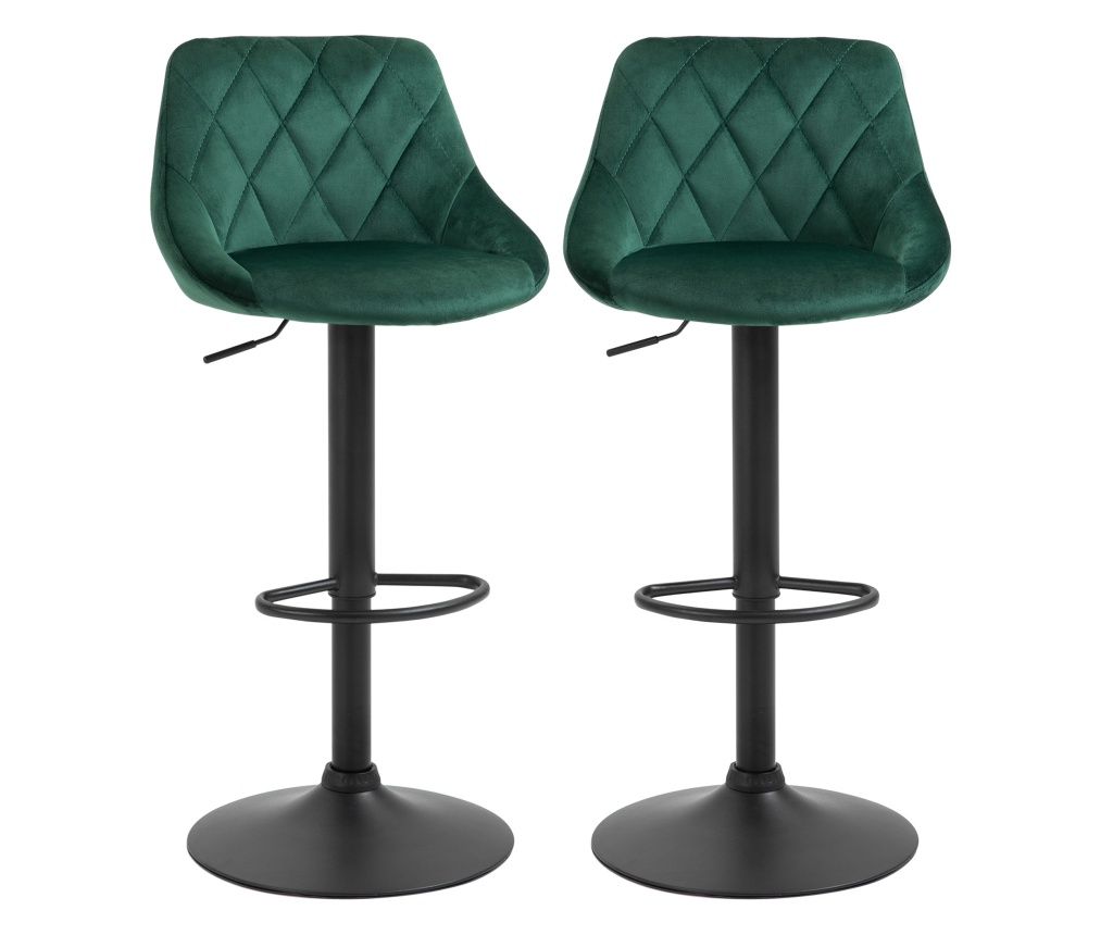 Комплект от 2 регулируеми въртящи се бар стола с кадифена тапицерия, зелени