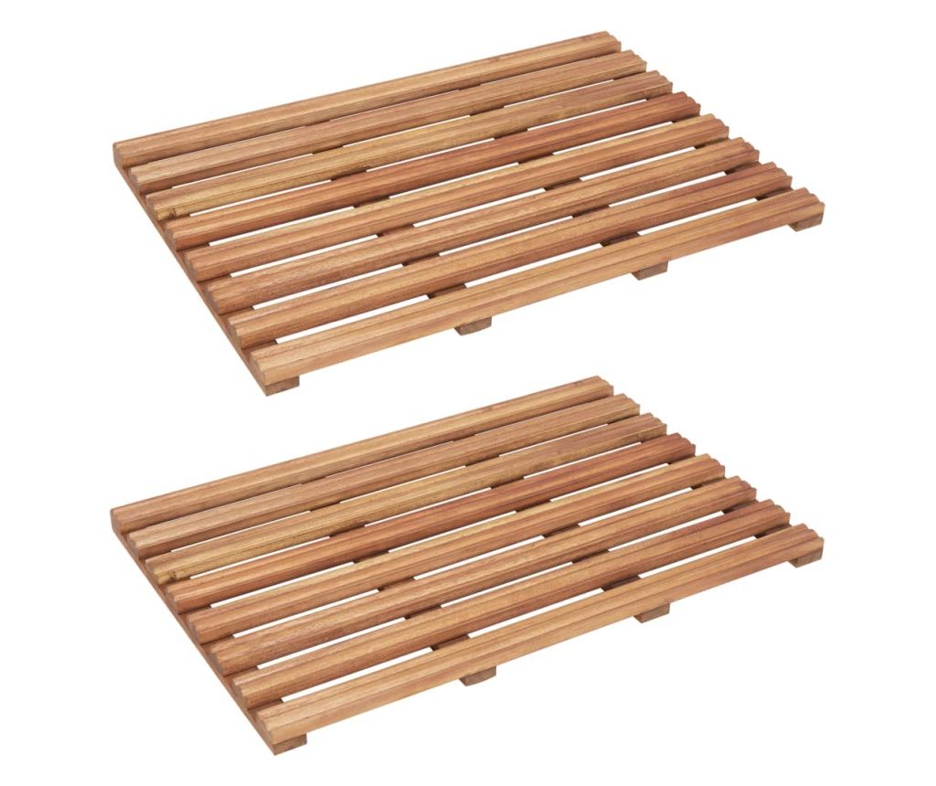 Постелки за баня, 2 бр, акациево дърво масив, 56x37 см