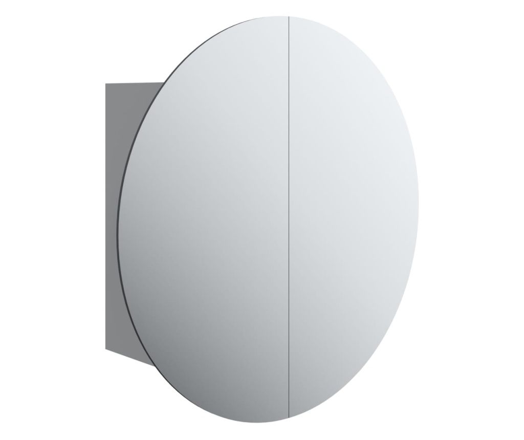 Шкаф за баня с кръгло огледало и LED, сив, 47x47x17,5 см