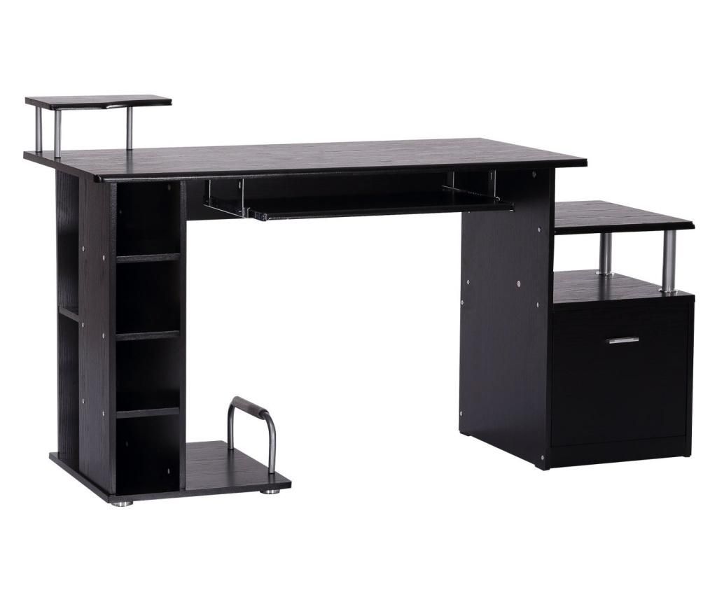 Бюро с 3 чекмеджета и 3 обръщащи се рафта, 120 см дървено бюро, цвят орех